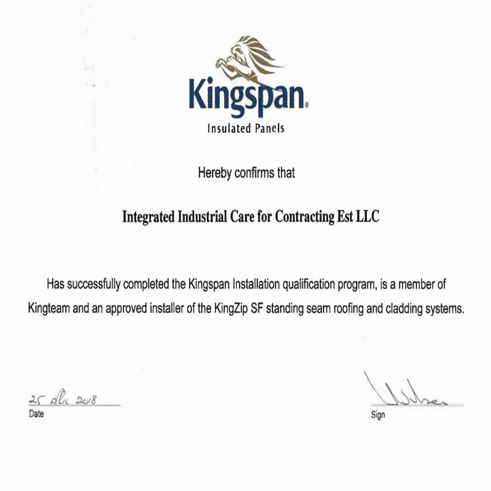 Certified in installers from KINGSPN UK for ALUMINUM ZIP BLOCK ceiling works - Certified in installation by KEBAR Jordan and Saudi SPF